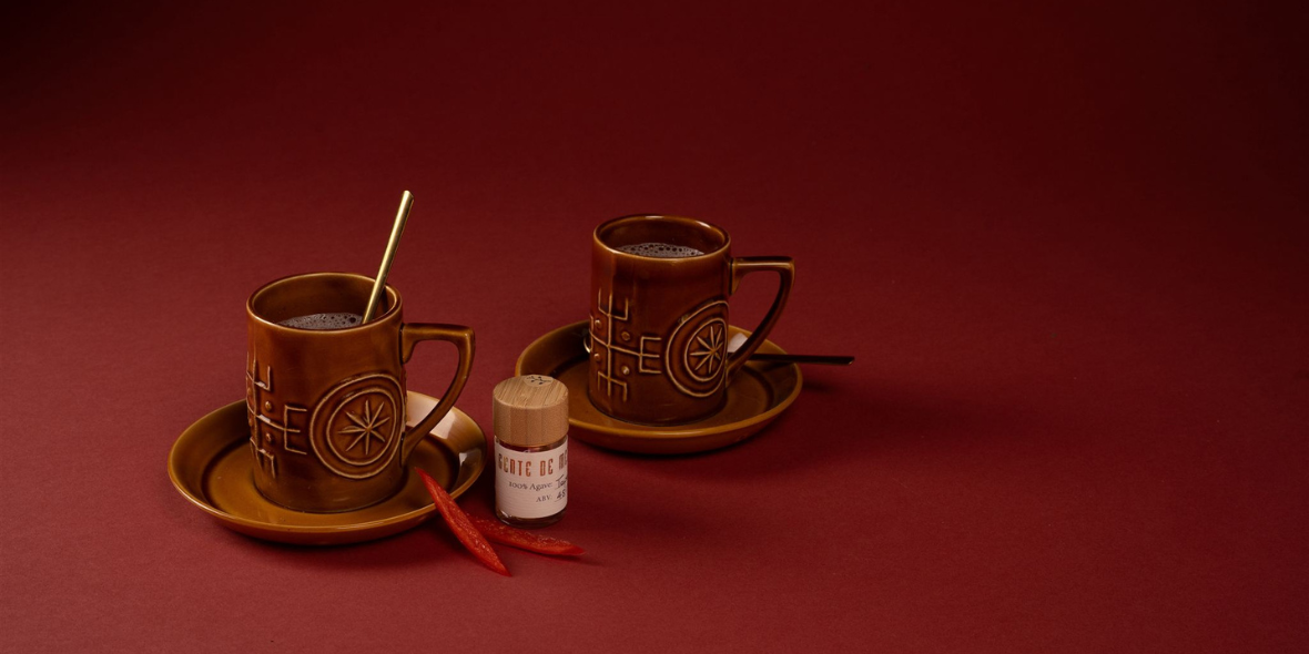 3. Add the remaining hot milk to your cup and stir until fully combined and velvety.4. If the moment calls for it, add a splash of mezcal.