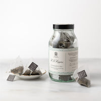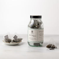 Enjoy the rich flavours of H.R.Higgins' finest teas in biodegradable pyramid bags. Their spacious design allows the leaves to expand fully for a more flavourful cup. Each glass jar contains 15 tea bags.