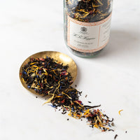 We blend smooth, mellow black China tea with golden marigolds, vivid cornflowers, and a whisper of tropical fruit to create a gently perfumed, refreshingly juicy infusion. Light, uplifting, and full of sunshine.